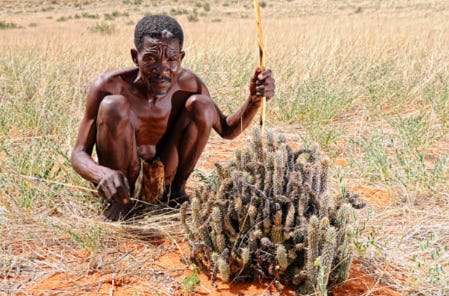 Prima facie, we wouldn't expect to find mind-altering traditions in such a society. On the one hand, life requires a lot of focus and concentration because the environment is harsh and demanding - and in such an environment, you can pay dearly for getting high. This is what makes their use of a succulent (aka 'cactiform') called Hoodia gordonii very surprising and interesting.